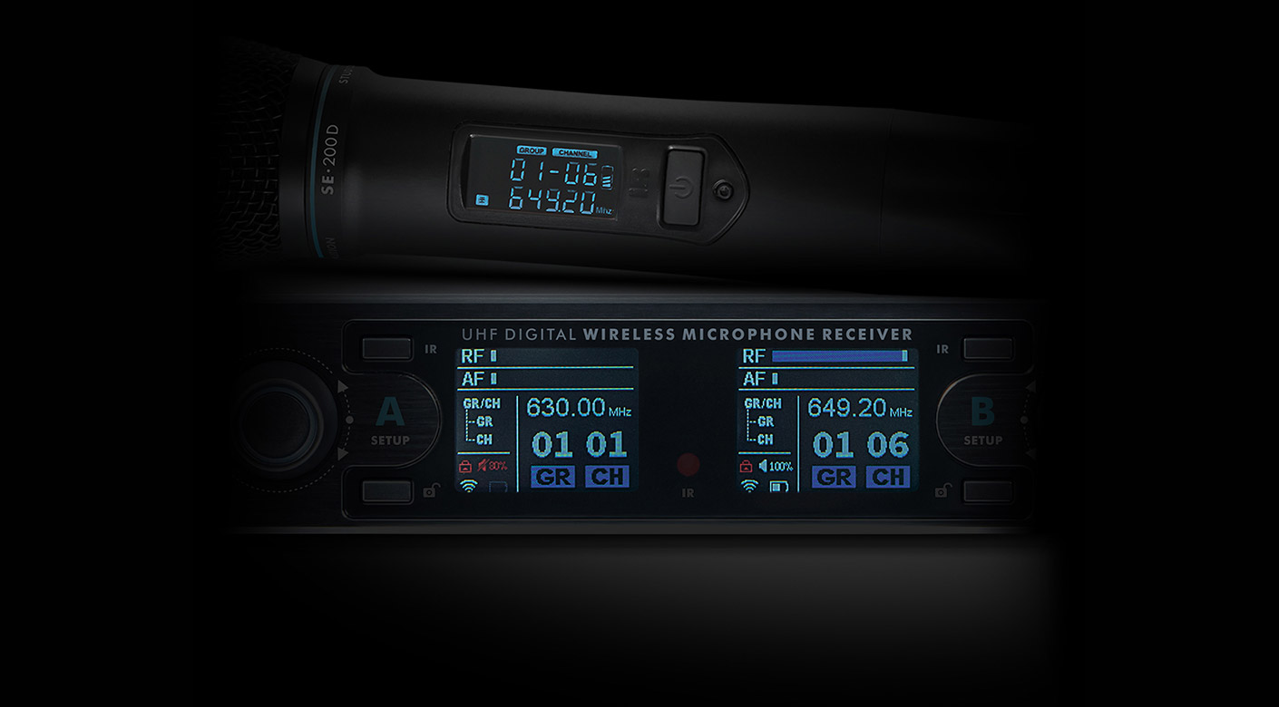 В комплектацию микрофонной системы SE • 200D входит приемник и 2 удобных микрофона в металлическом корпусе. А также: